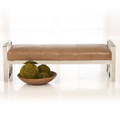 Chrome upholstered bench. 54"Wx21"Dx18"H. Various fabrics available.